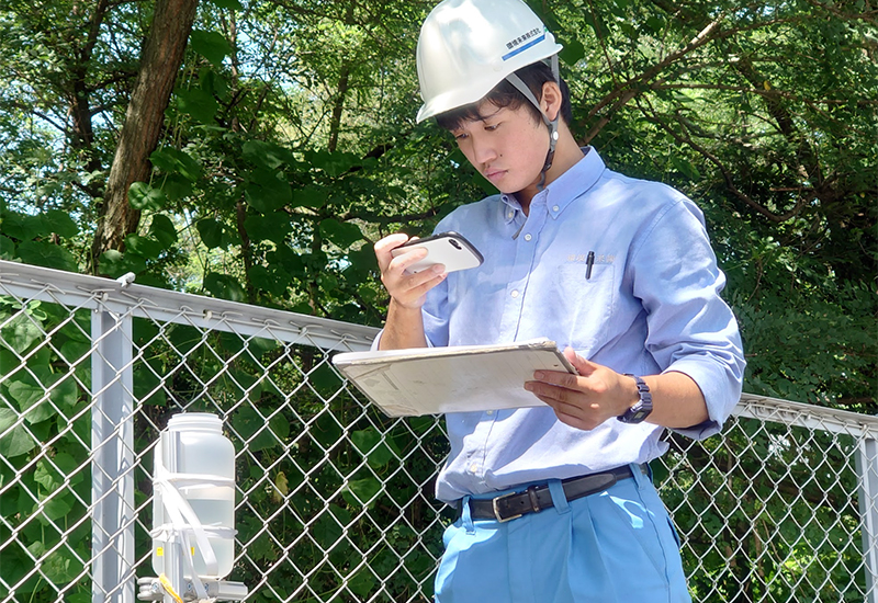 主に屋外やお客様の工場・事業所・施設敷地内において、水質・大気・土壌などの環境に関わる各種調査および測定業務を行います。具体的には、河川や地下水、排水などの水質分析、大気中のガスや粉じんの採取、土壌中の有害物質の確認などを通じて、環境への影響評価や法令遵守のためのデータ収集を行います。測定は、専門の機器を用いた現地でのサンプリング作業と、必要に応じてラボでの精密な分析を組み合わせて実施します。お客様の環境保全への取り組みを技術面から支える、社会的意義の高い仕事です。